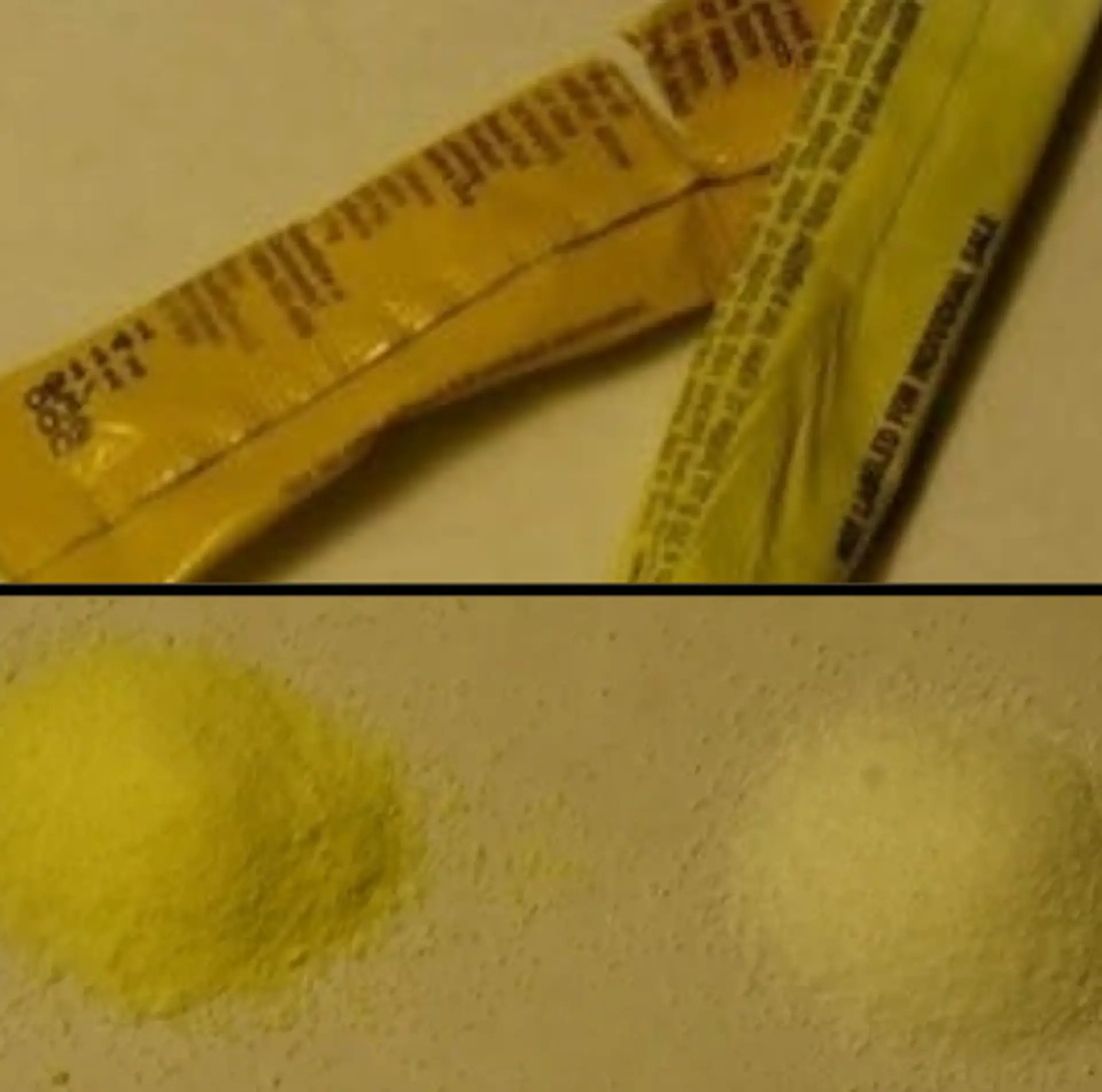 Look at this image. The powder on the top of this image is sugar-free lemonade. It is added to water to make a refreshment. The powder on the bottom of the image is aspirin. Aspirin is used as a pain reliever and fever-reducer. It is a safe drug for most people, but it should not be used by people who are allergic to aspirin or other anti-inflammatory drugs, people with a history of ulcers or stomach bleeding, or children with viral illnesses.